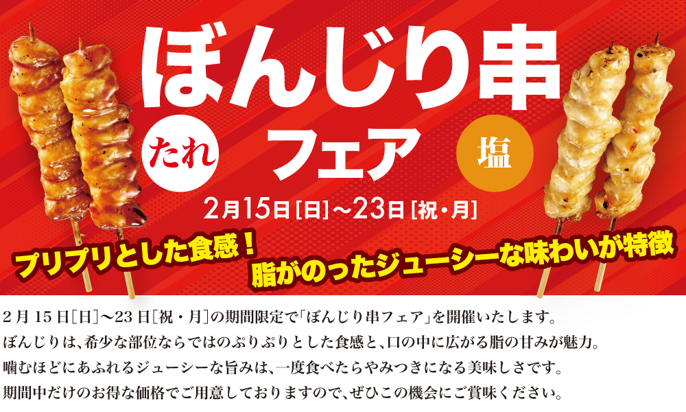 ・ぼんじり串 たれ 1本 通常販売価格142円(税込)⇒フェア価格127円(税込)