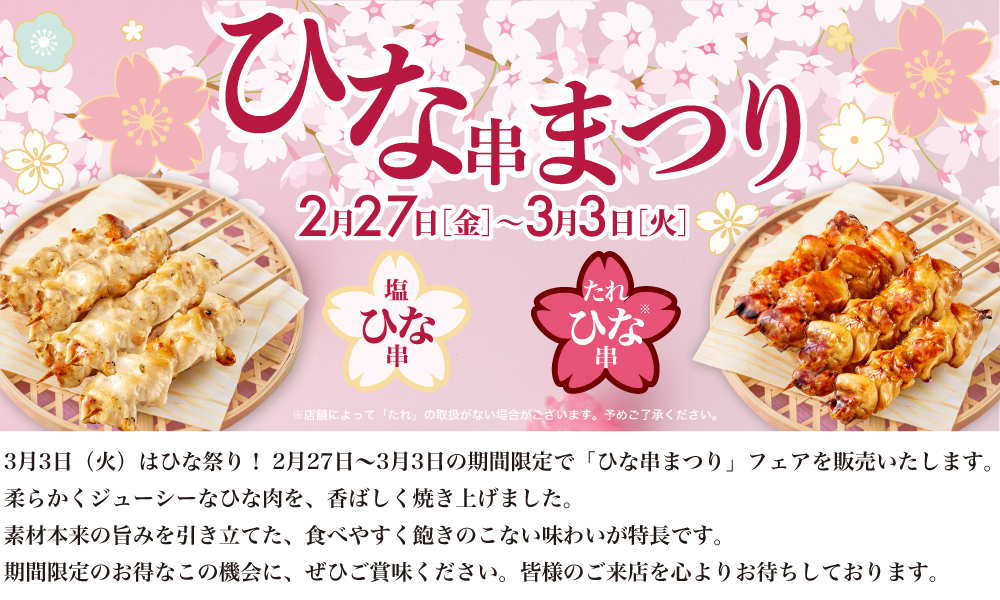 ・ひな串 1本 通常販売価格142円(税込)⇒フェア価格131円(税込)