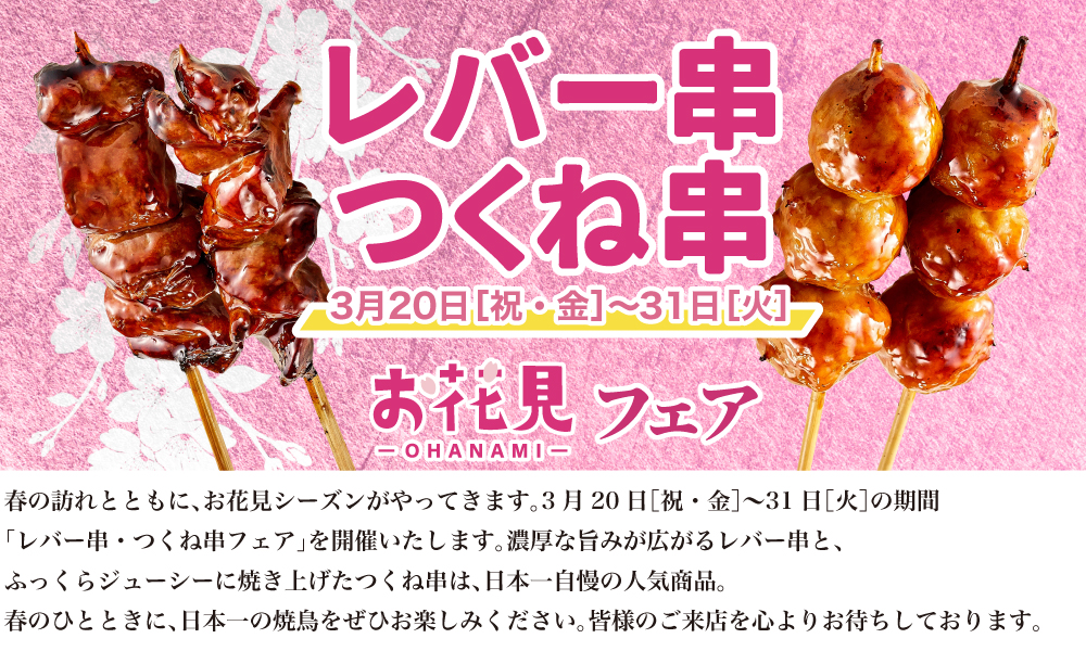 【期間限定】レバー串・つくね串フェア実施
